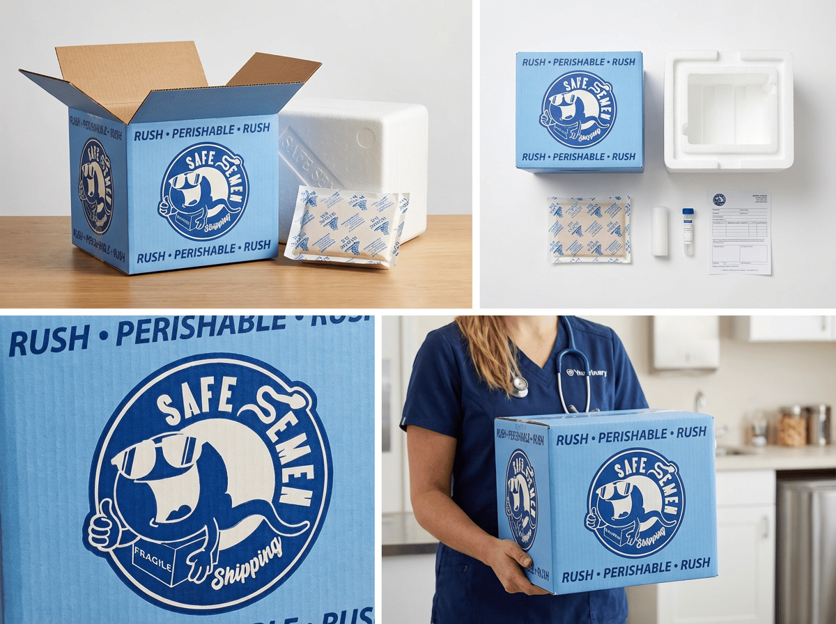 I'm now carrying Safe Semen Shipping boxes on my website. Minimum order is 10 boxes. $280 shipped via FedEx ground anywhere in the lower 48 states. That's $28 per box including shipping.